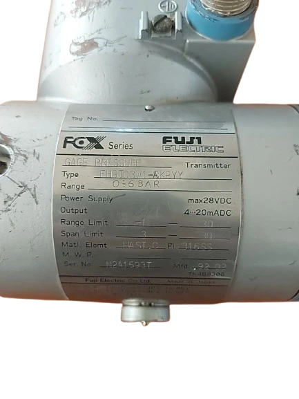 GAUGE PRESSURE TRANSMITTER TYPE FHGT03W1-AKBYY از سری FOX Series شرکت FUJI ELECTRIC ژاپن برای اندازهگیری فشار نسبت به فشار اتمسفر (Gauge Pressure) طراحی شده است. رنج اندازهگیری این مدل 0 تا 6 بار بوده و خروجی استاندارد 4-20 mA دارد که بهسادگی قابل اتصال به PLC و سیستمهای اتوماسیون است.