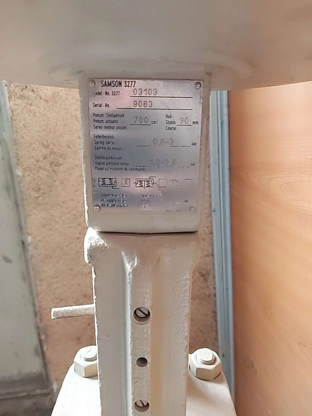 این کنترل ولو به عملگر معروف و قدرتمند SAMSON 3277 مجهز است که روی پلاک آن مشخصات زیر درج شده: